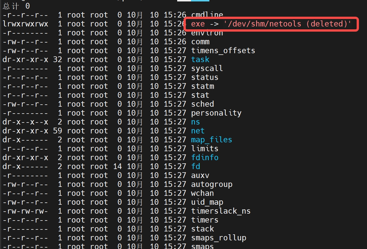 进到隐藏进程目录看一下(cd /proc/53533):